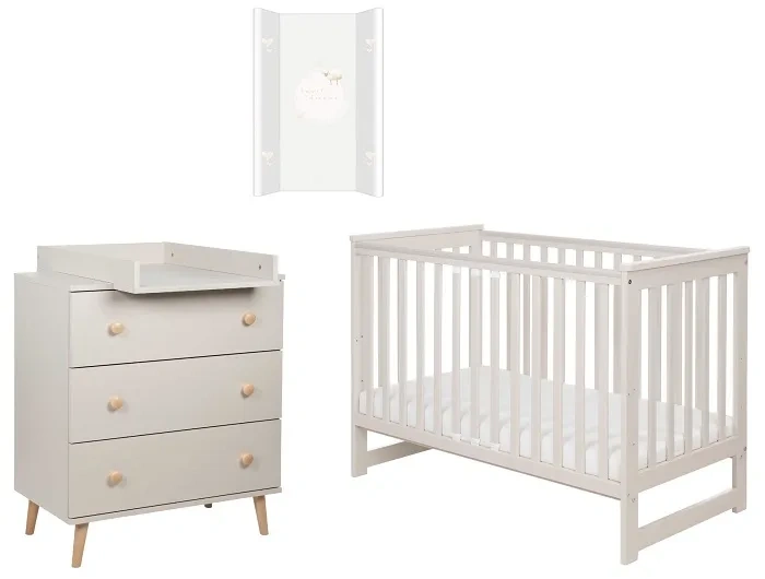 YOONCO - łóżeczko Iwi + komoda + przewijak miękki Owieczka | Beż