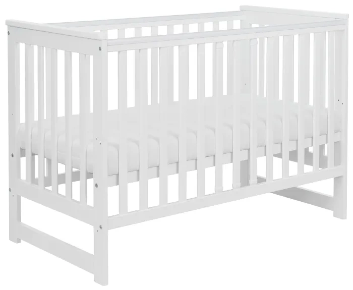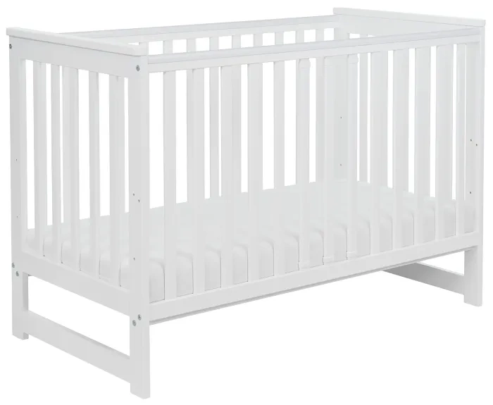 Dzięki wymiarom 120 × 60 cm oraz trzem poziomom regulacji wysokości dna, łóżeczko „rośnie” razem z dzieckiem.