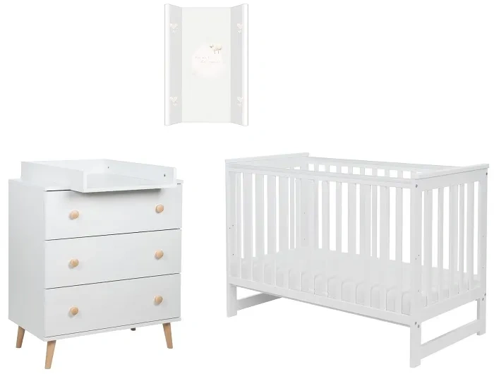 YOONCO - łóżeczko Iwi + komoda + przewijak miękki Owieczka | Białe