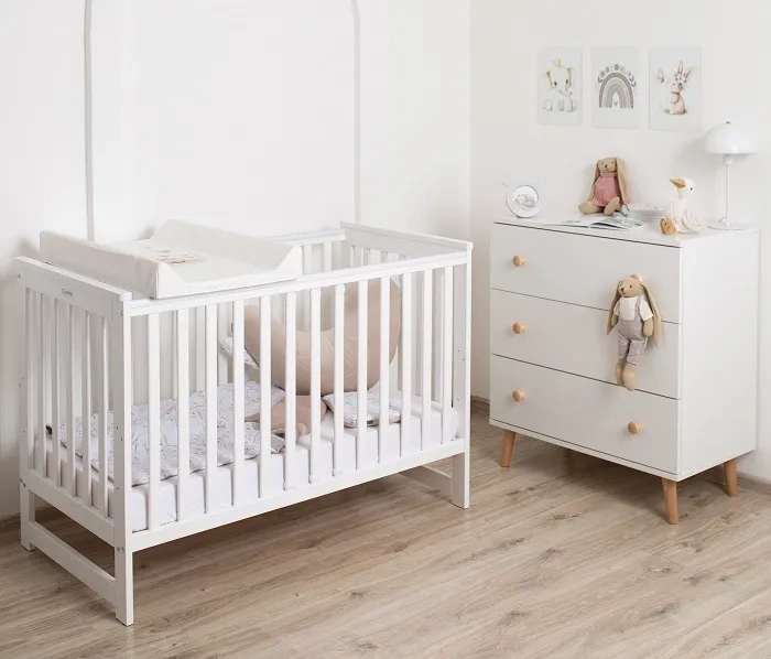 Odkryj przepiękny zestaw mebli od Yoonco! Łóżeczko Iwi to idealne miejsce dla spokojnego snu i wypoczynku maluszka, a wyjątkowo praktyczna komoda z przewijakiem pozwala na wygodne przechowywanie jego rzeczy. Mebelki zostały stworzone z myślą o potrzebach dziecka, łącząc w sobie przemyślaną funkcjonalność i elegancki design. To produkty, które wyróżniają się najwyższą jakością wykonania - będąc doskonałym przykładem solidnego, polskiego rzemiosła.