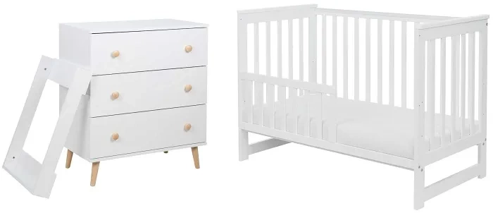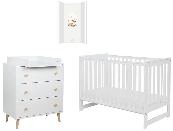 YOONCO - łóżeczko Iwi + komoda + przewijak miękki Sarenka | Białe