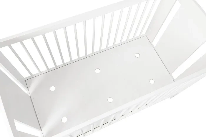 Trzy poziomy regulacji wysokości dna pozwalają dostosować łóżeczko do wieku i rozwoju dziecka – od noworodka, po starszaka stawiającego pierwsze kroki.