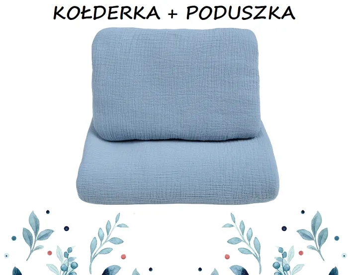 YOONCO - muślinowy komplet: kołderka 80x100 cm + poduszka 22x30 cm | Jeans