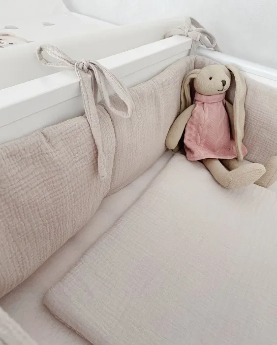 YOONCO - muślinowy ochraniacz na łóżeczko 180x28 cm | Krem