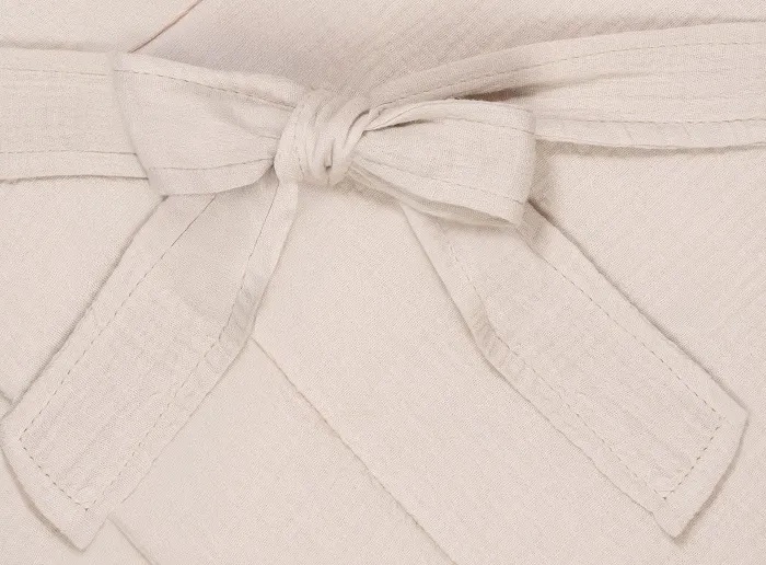 Delikatna tkanina - bawełna muślinowa - zapewnia wysoką jakość becika, a przepiękna kokarda do wiązania dodaje mu uroku.