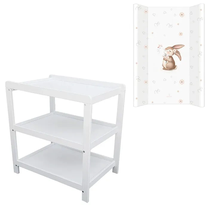 Pomimo niewielkiego rozmiaru, mebel oferuje wszystko, czego potrzeba do komfortowego przewijania maluszka – stabilny blat, podwyższone brzegi oraz dwie praktyczne półki na niezbędne akcesoria.