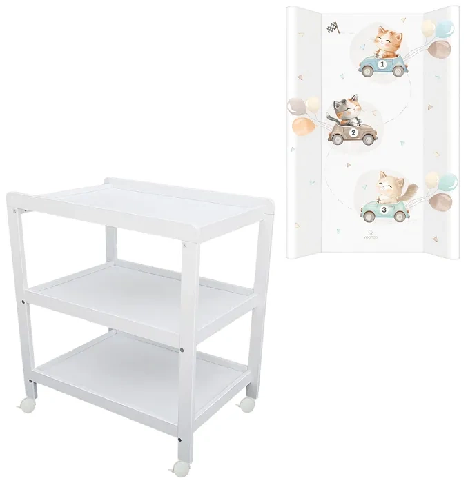 YOONCO - półkoprzewijak na kółkach biały + przewijak profilowany miękki | Kotek