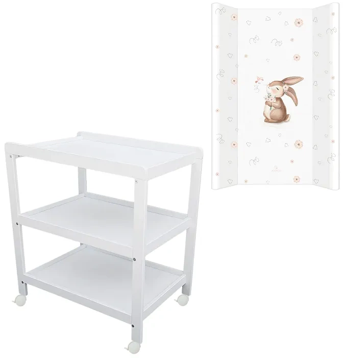 Pomimo niewielkiego rozmiaru, mebel oferuje wszystko, czego potrzeba do komfortowego przewijania maluszka – stabilny blat, podwyższone brzegi oraz dwie praktyczne półki na niezbędne akcesoria.