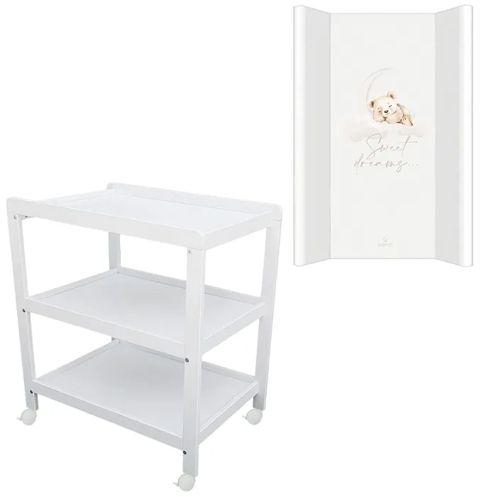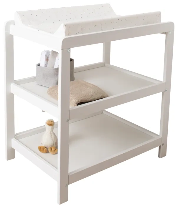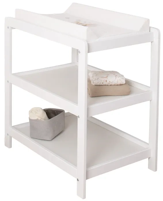 Pomimo niewielkiego rozmiaru, mebel oferuje wszystko, czego potrzeba do komfortowego przewijania maluszka – stabilny blat, podwyższone brzegi oraz dwie praktyczne półki na niezbędne akcesoria.