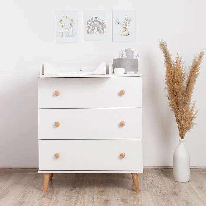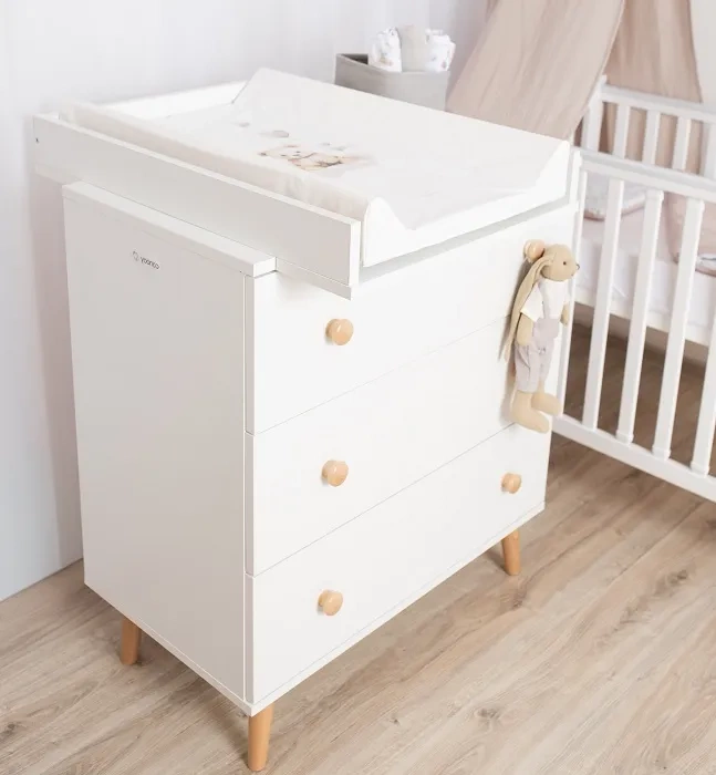 Modny design sprawia, że przewijak pasuje do każdego wnętrza i stanowi piękne uzupełnienie wystroju pokoju dziecięcego.