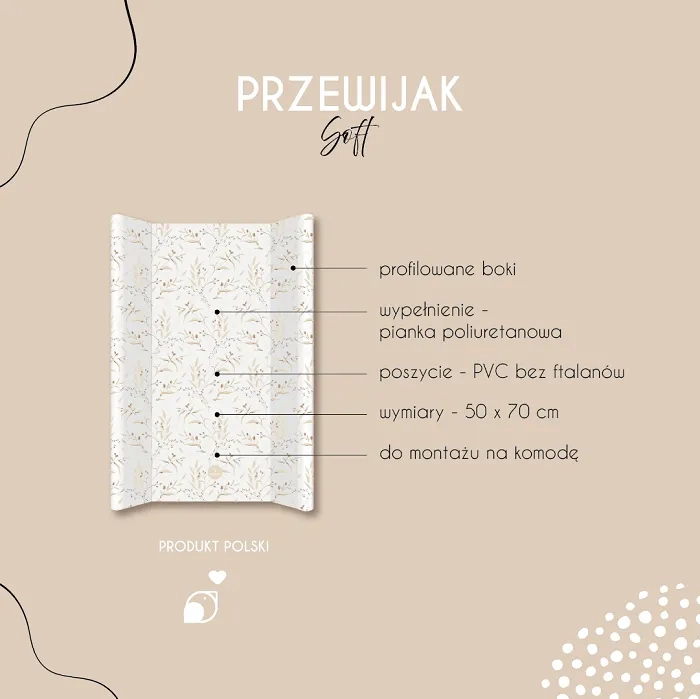- kompatybilność - półko-przewijak, komoda oraz inne twarde powierzchnie meblowe;