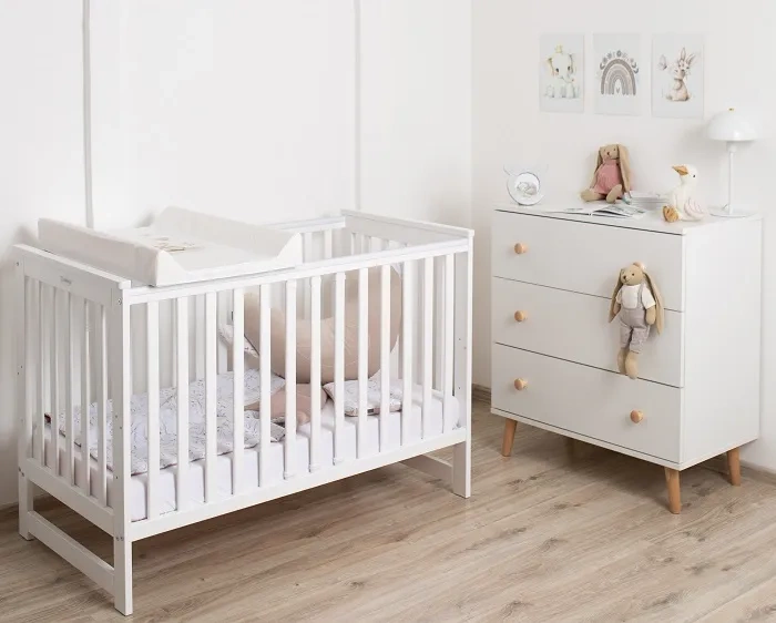 Modna kolorystyka sprawia, że przewijak pasuje do każdego wnętrza i stanowi piękne uzupełnienie wystroju pokoju dziecięcego.