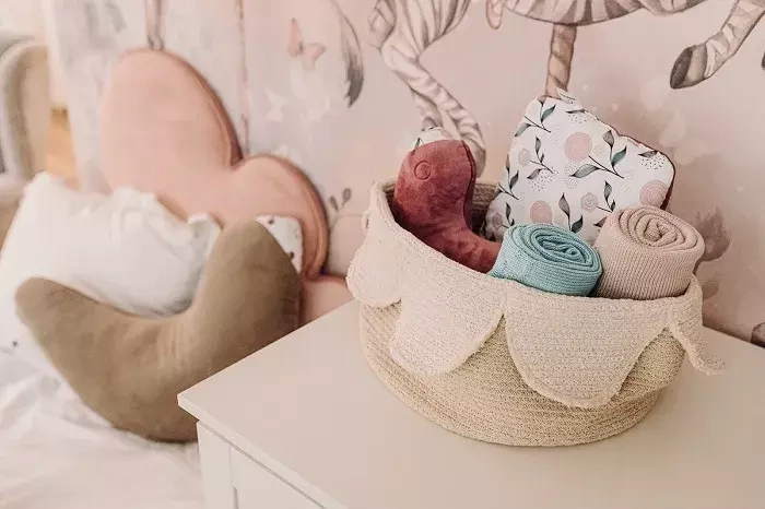 Modna, pastelowa kolorystyka użytych materiałów sprawia, że pasuje on do każdego wnętrza i stanowi piękne uzupełnienie wystroju pokoju dziecięcego.