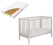YOONCO - łóżeczko drewniane Iwi z szufladą i barierką + materac Nature | Beżowe